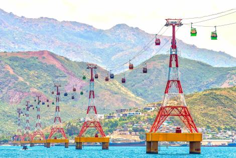即將前往芽莊最著名的珍珠島,前往珍珠島有高空纜車和快艇2種方式,跨海纜車全長3320公尺,是世界上最長的跨海纜車之一,能俯瞰芽莊灣、珍珠島等,坐擁無敵海景,讓你好好欣賞壯麗的海景和島嶼。