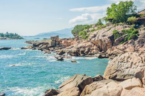 鍾嶼石岬角坐落於芽莊海岸,以巨石錯落、海浪拍岸的壯觀景致著稱。天然巨岩彷彿從海中誕生,形態奇特,是攝影與賞景的絕佳秘境。清晨與黃昏時分,海天染上柔光,彷彿走入詩畫中的濱海奇境。