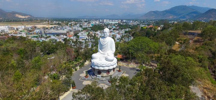 芽莊龍山寺是當地最具代表性的佛教聖地,以巨大的白色坐佛聞名。拾階而上,寺院古樸莊嚴,香火繚繞,眺望市區與山海交融景致,心境也隨之寧靜。融合文化與自然的靈性之地,是旅人放慢腳步、感受內心平靜的好去處。