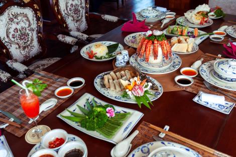 在芽莊皇帝郵輪上享用特色海鮮午餐,彷彿置身宮廷盛宴。嚴選當地新鮮漁獲,融合越式風味與精緻擺盤,每一道料理皆展現皇室格調。海風輕拂、碧海相伴,美景與美食交織出難忘的奢華午間時光。