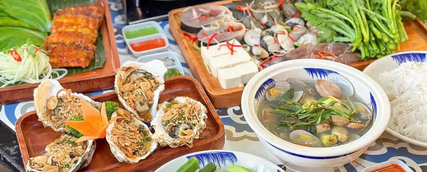 Mộc Seafood之所以能在峴港眾多海鮮餐廳中脫穎而出,主要在於它成功結合了「大排檔的熱鬧鮮甜」與「現代餐廳的舒適裝潢」。門口一整排壯觀的水族箱是標配,所有的龍蝦、螃蟹、蛤蜊都是現場稱重計價,確保食材絕對新鮮。無論是經典的越式熱炒、法式奶油蒜香,還是符合華人口味的清蒸,廚師都能駕馭。