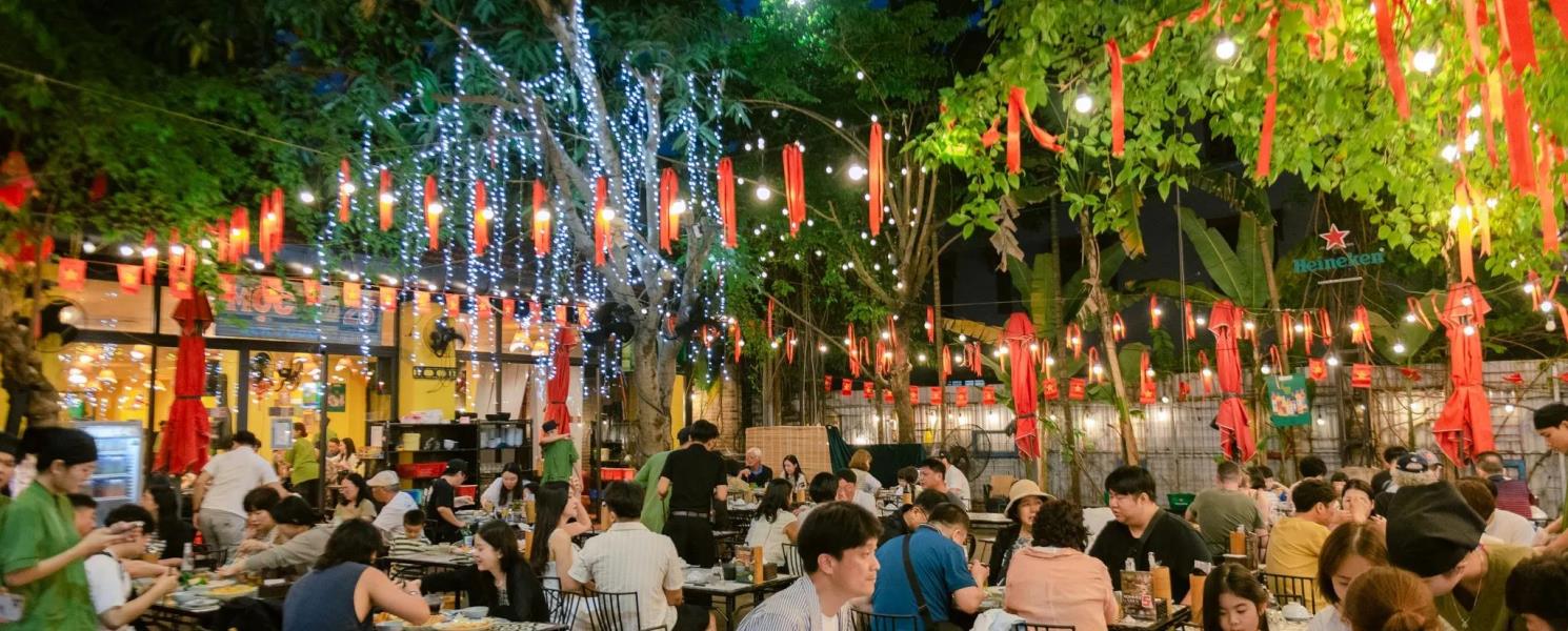 Mộc Seafood之所以能在峴港眾多海鮮餐廳中脫穎而出,主要在於它成功結合了「大排檔的熱鬧鮮甜」與「現代餐廳的舒適裝潢」。餐廳採用大量的木質元素與綠色植栽裝飾,營造出一種像是在熱帶花園中用餐的悠閒感。入夜後,餐廳內掛滿的越南傳統燈籠會亮起,非常有會安古鎮的氛圍,拍照非常出片。