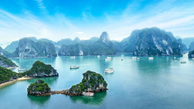 位於廣寧省的下龍灣面積廣達1553平方公里,羅列著1969座島嶼,這些島嶼是由二億五千萬年歷史的石灰岩經溶蝕、堆積,加上海水侵蝕而形成壯麗非凡景觀,也就是所謂的喀斯特地形。其秀美的自然風光與生態價值相輔相成,交相輝映。