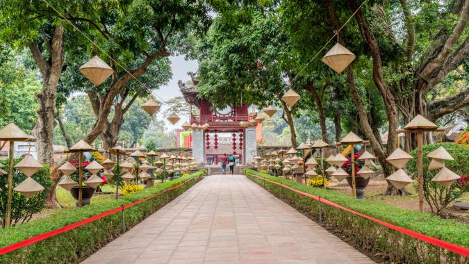 河內文廟已有千年歷史,正式名稱為文廟—國子監,始建於1070年李朝,是座傳統孔廟建築,也是越南儒教文化的代表與象徵。1076年創建國子監,成為越南第一所最高學府。與一般孔廟不同之處在於,此地是拿香供奉儒聖孔子的。