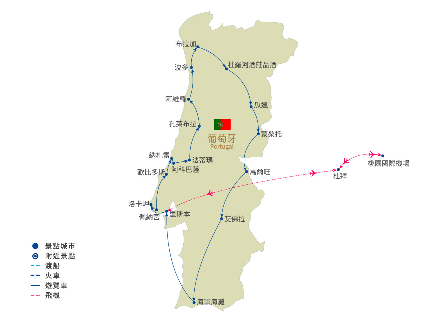 參考行車距離|波多-60km-布拉加-30km-吉馬拉斯-100km酒莊之旅-70km旅館
