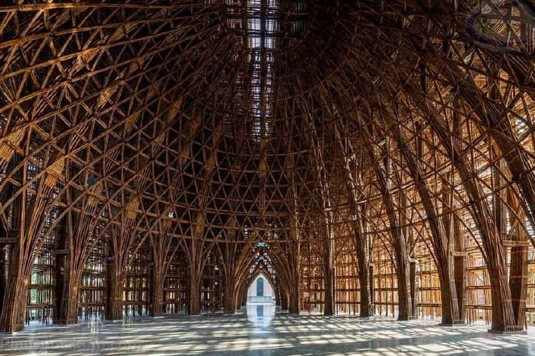 富國大世界的竹屋是越南最大的竹屋,由建築師 Vo Trong Nghia 設計。這座近15米高、佔地700平方米、以4萬2000根竹子打造越南最大竹構建築。這件作品是結合越南三大象徵的化身:蓮花、銅鼓和竹樹。所有這些都有助於展示對越南人民的文化、精神和高尚品質的自豪。也成為富國大世界園區必拍的門面,作為Grand World的門面氣勢十足。竹屋也是每一位來到大世界的遊客都不能忽視的理想打卡點。