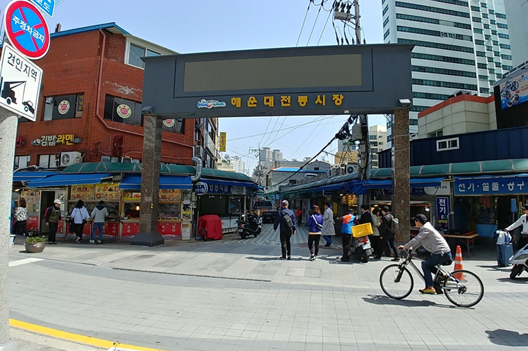 【釜山海雲臺市場】是避暑觀光客必訪地之一。在此可四處遊覽並享受購物的樂趣,不僅有各種新鮮便宜的蔬菜、肉類與魚貝類,還有飯捲、辣炒年糕等各式各樣的美食。