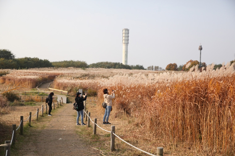 【天空公園(芒草公園)】是和平公園、蘭芝川公園、蘭芝漢江公園及彩霞公園等世界盃公園中,最高最接近天空的公園,所以顧名思義取名為天空公園,在夏天是整片綠油油的寬闊大草原,在秋季則開滿整片白茫茫的紫芒草,獨特自然景觀,吸引不少遊客之外,更是許多電視劇或MV的拍攝取景地。