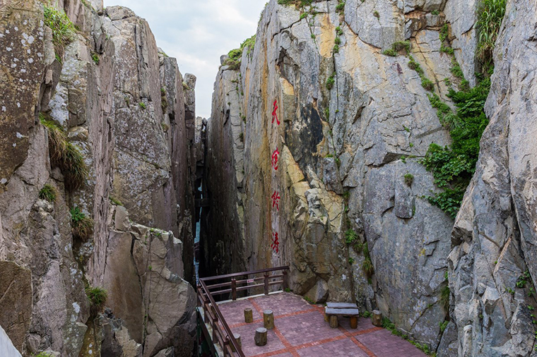海蝕溝地形,位於東引天王澳的左側岬角,這裡曾經是軍方的重要示範據點,曲折的戰備壕溝兩旁,標語林立,每個轉角,皆可見到像是「誓死固守據點」、「生死相與共存亡」等精神標語。對訪客而言,能如此貼近前線據點,感受其中的戰鬥氣息,是非常奇特的體驗。