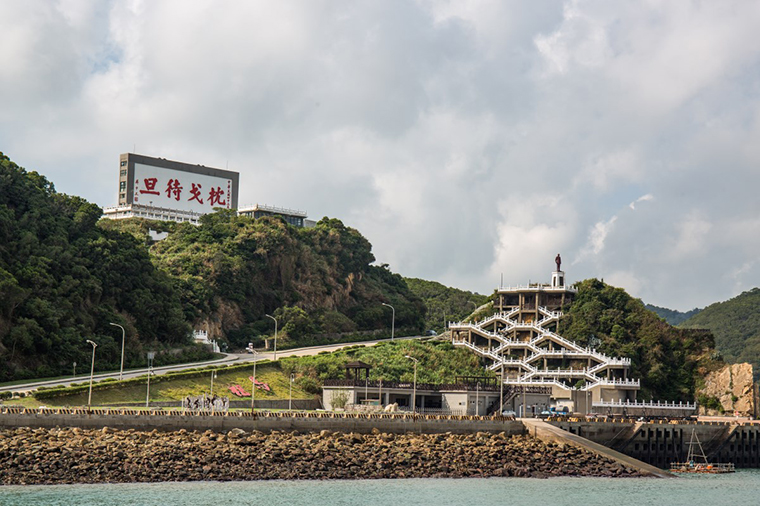 當台馬輪駛進馬祖福澳港,倚著船桅大紅色的四個「枕戈待旦」總會印入眼簾,巍巍聳立在南竿的福清嶺上。園區設有展望台登高俯瞰,可眺望福澳港全景,海天一色,別具一番風情。